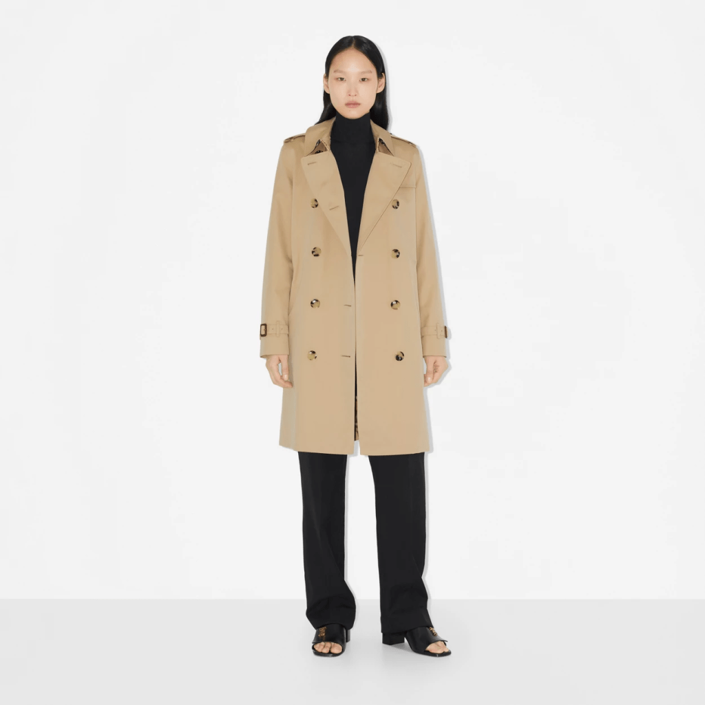 O trench coat Waterloo é o modelo mais próximo do original criado por Thomas Burberry: ele em um caimento reto e mais solto. Esse estilo clássico só existe no comprimento mais longo.