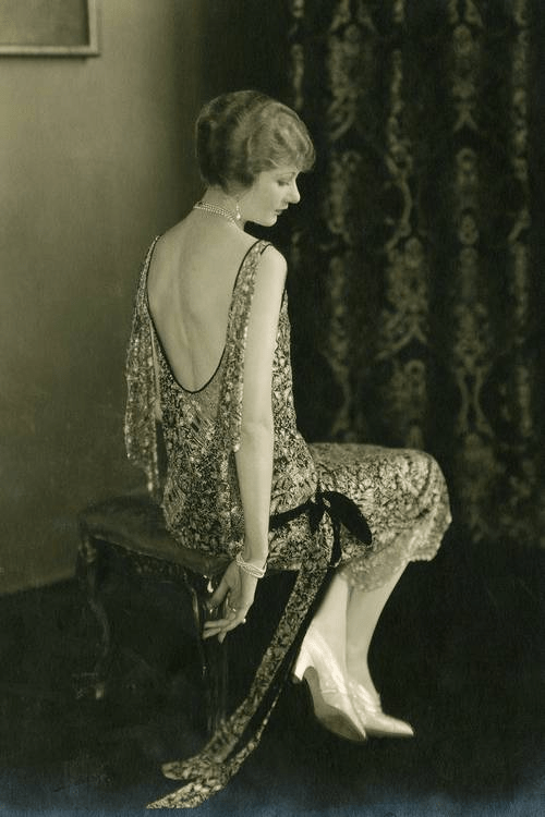 Depois de trocar os vestidos da belle époque por macacões masculinos para contribuir com o esforço de guerra (afinal, não dá pra fazer muito trabalho pesado com um espartilho bem amarrado), as mulheres mudaram radicalmente com relação às roupas que estavam dispostas a usar após a Primeira Guerra Mundial. Espartilhos apertados e saias rodadas estavam fora de moda, sendo substituídos por formas elegantes e cortes relaxados. Naturalmente, é o vestido melindroso que chega até os joelhos que continua sendo o símbolo máximo da moda dos anos 1920, com cinturas baixas, saias plissadas e enfeites art déco adicionando glamour para a cocktail hour.